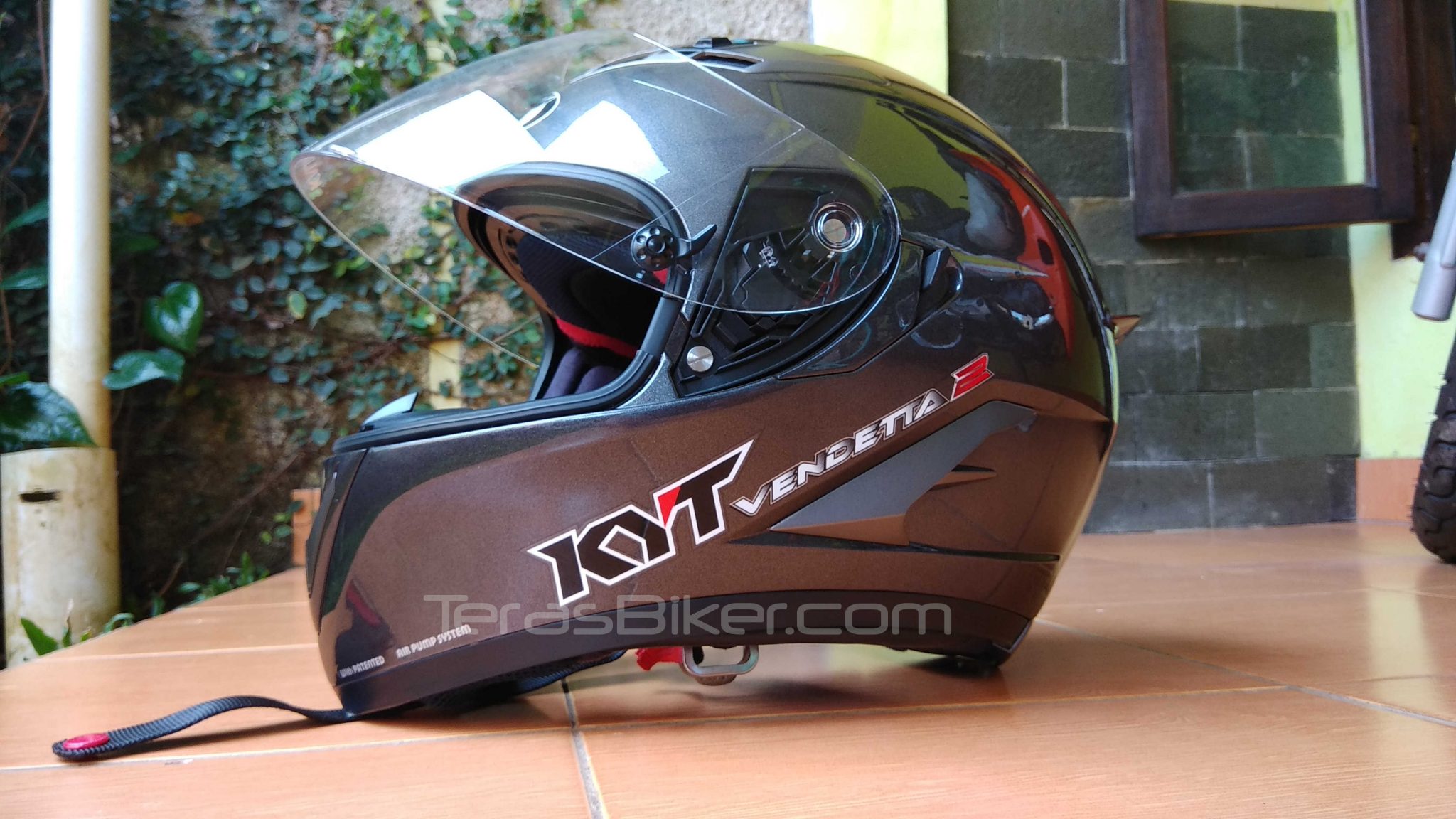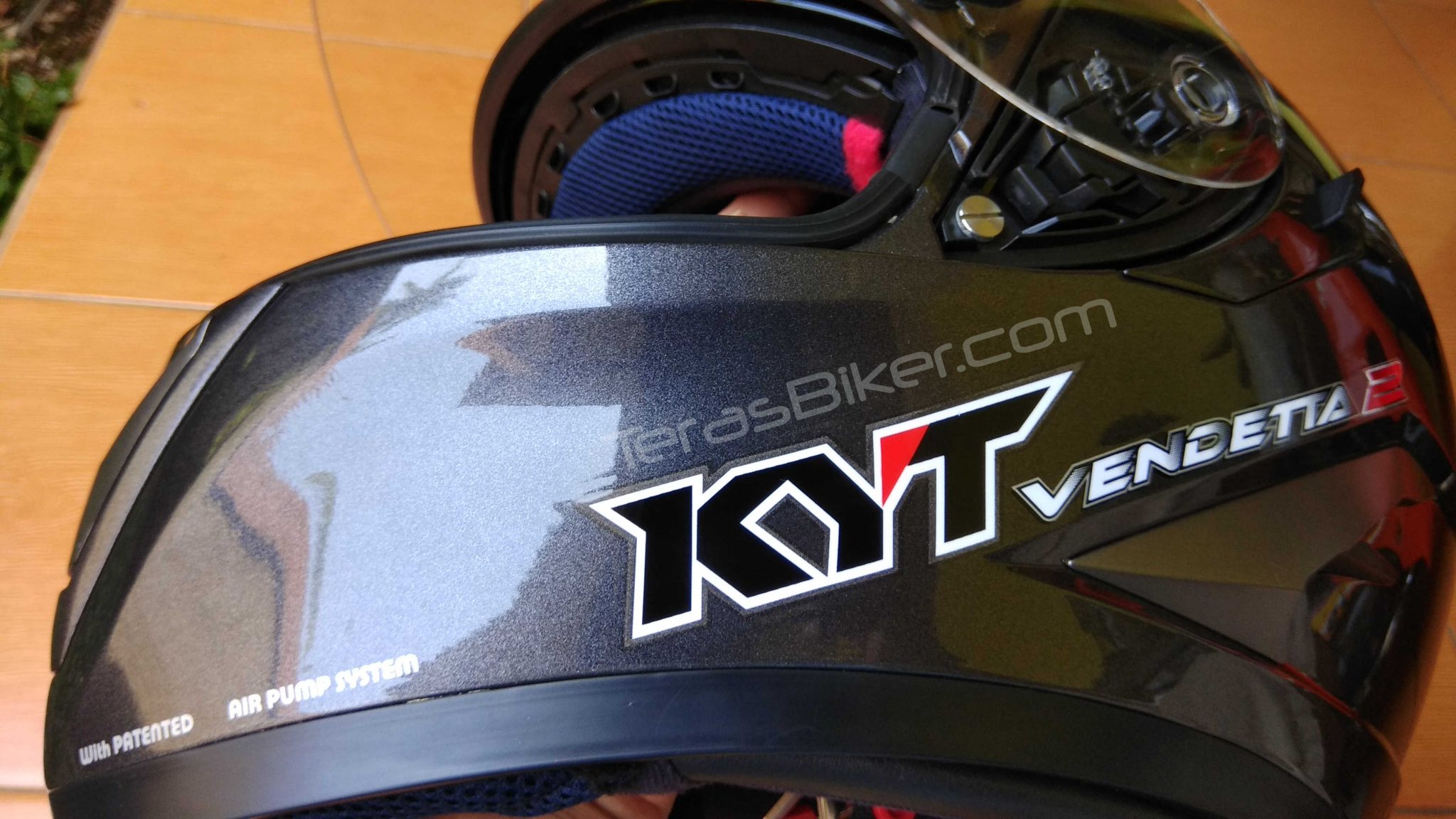 TerasBiker.com – Hallo semua.. sobat setia Tebe’, Untuk kali ini tebe ingin mencoba mengulas sedikit tentang brand helm buatan Indonesia, yup apalagi klo bukan KYT….beberapa bulan yang lalu tepatnya dibulan Agustus setelah cari referensi macam-macam helm fullface dari berbagai merk, akhirnya di putuskan lah beli KYT Vendetta 2. Helm Fullface dengan bentukan yang cukup racy dan Aerodinamis banget sob’..untuk warna sendiri tebe pilih yang Grey, kenapa gak warna lain misal merah, Hitam Glossy, Hitam Doff atau Putih ? alesannya cukup simple.. hehehe karena tebe ingin samain warna helm sama tunggangannya.. hehehe..