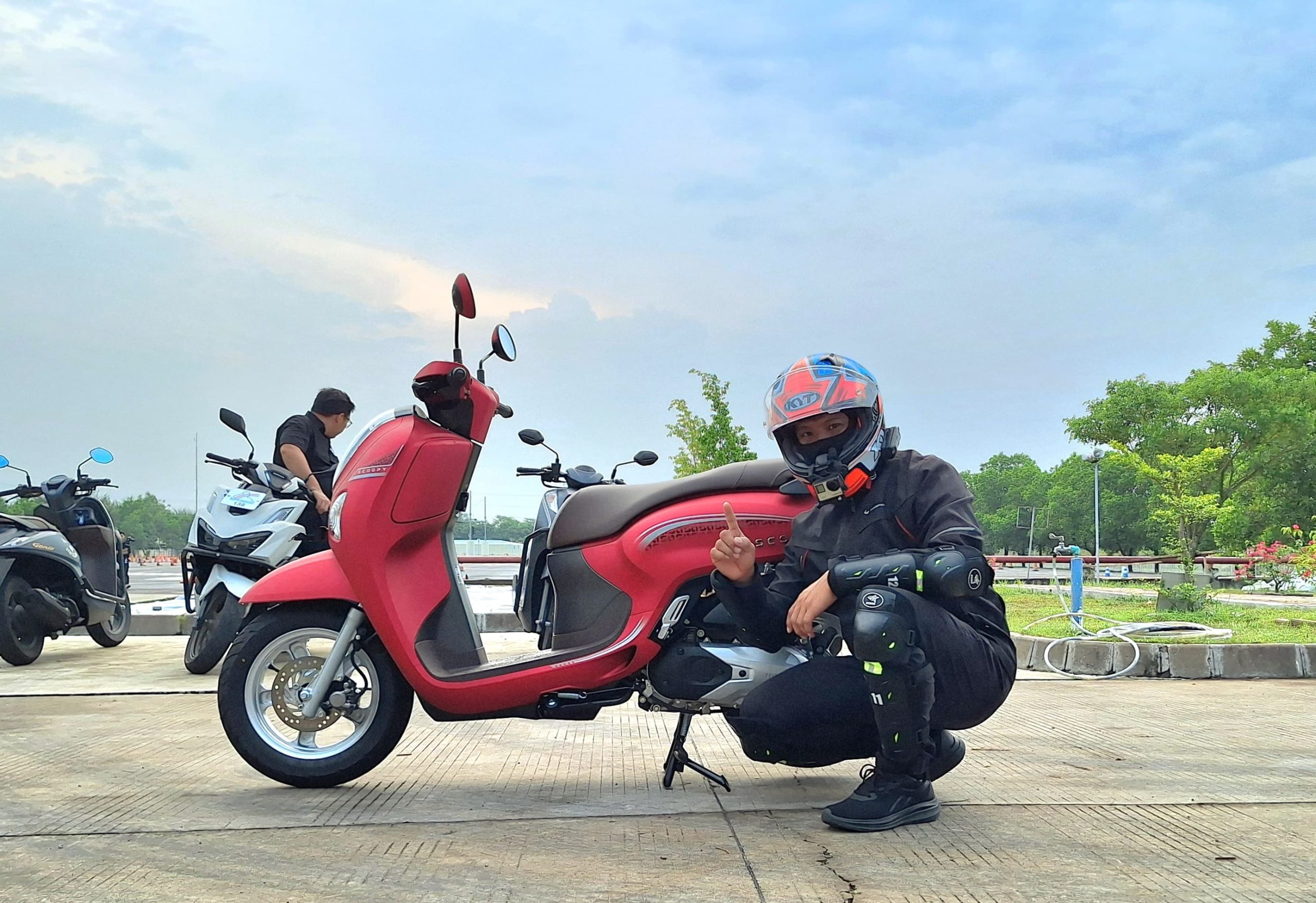 Jadi pada artikel ini kita fokus bahas soal Test Ride session New Honda Scoopy 2025 aja okeh, setelah bergantian dengan temen-temen dari media yang lebih duluan test ride, nah…kebetulan arena test ride di Astra Honda Motor Safety riding dan training center park sebelumnya diguyur hujan jadi cukup basah dan di himbau agar hati-hati.