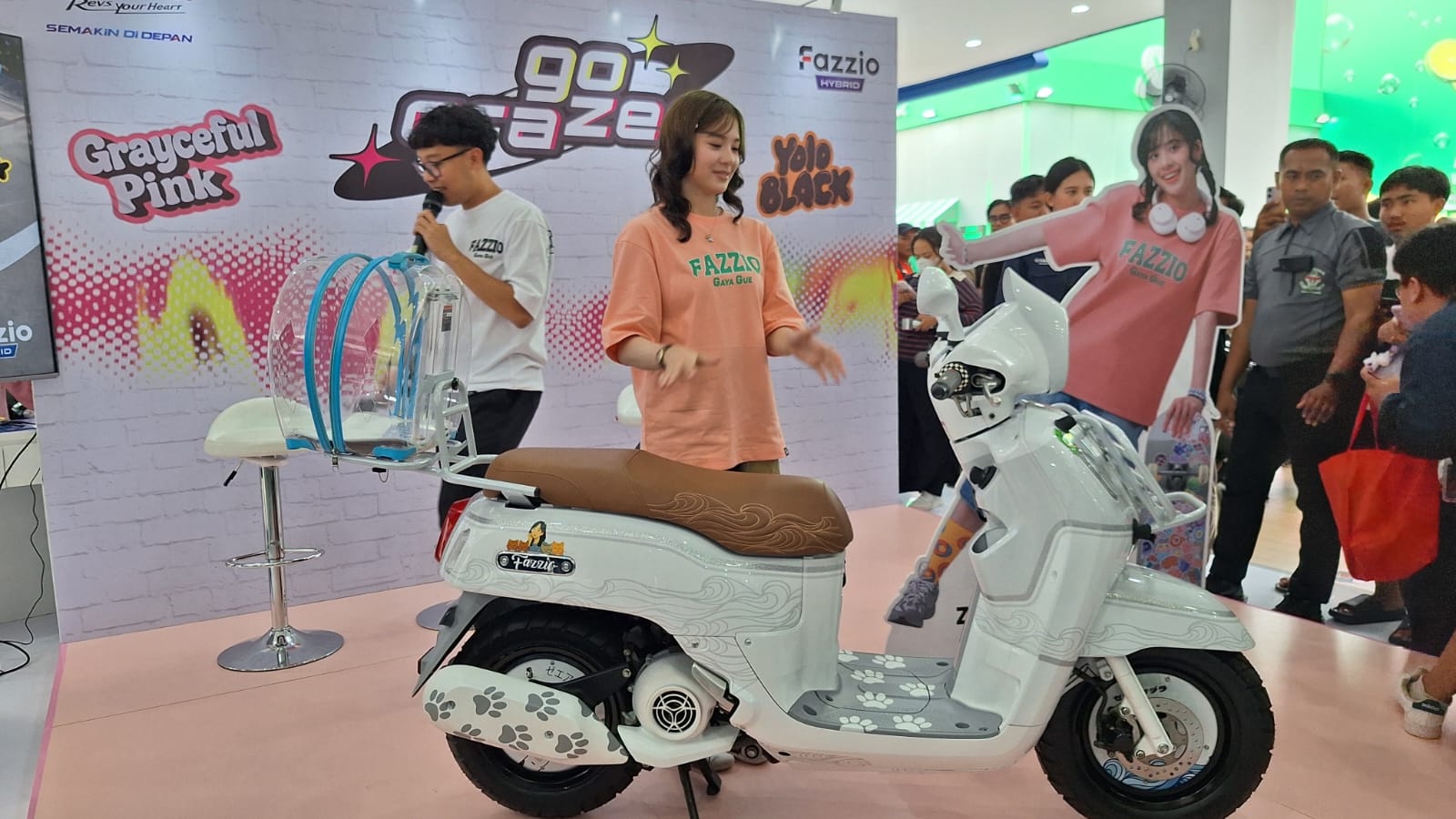 Keseruan peluncuran warna baru ini semakin terasa dengan kehadiran Zee Asadel, salah satu pengguna Fazzio Hybrid yang telah memodifikasi skutiknya sesuai dengan karakternya yang ceria dan dikenal sebagai cat lovers atau diketahui sebagai Fazzio Gaya Zee yang tampil unik dengan tema kucing.