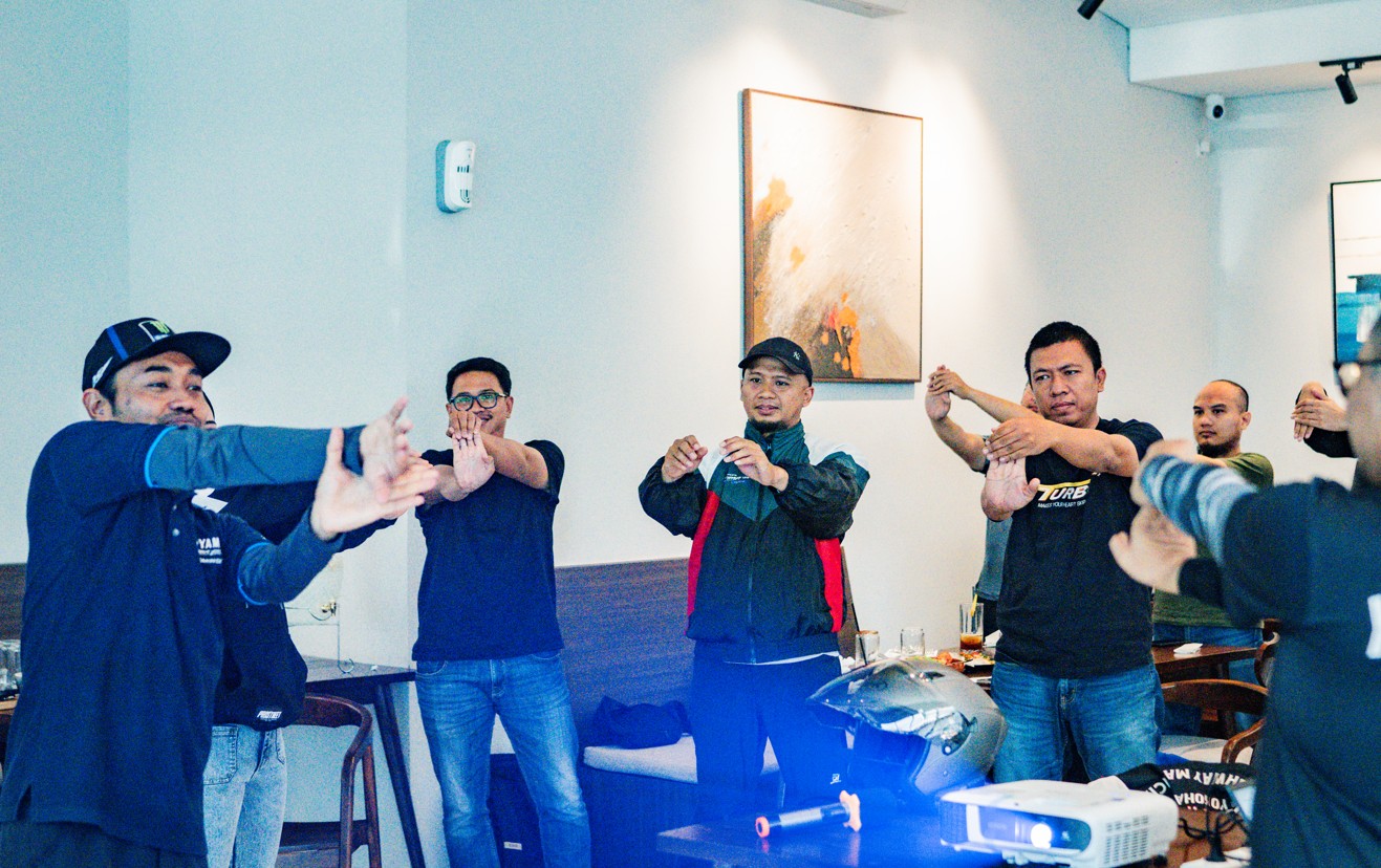 Sebelum mulai berkendara, Mas Arif dari tim Yamaha Riding Academy (YRA) memberikan briefing mengenai rute touring dan tips berkendara aman saat riding secara berkelompok. Setelah sesi pemanasan ringan, para peserta pun bersiap untuk menaklukkan rute menantang dengan sepeda motor Yamaha andalan mereka masing-masing.