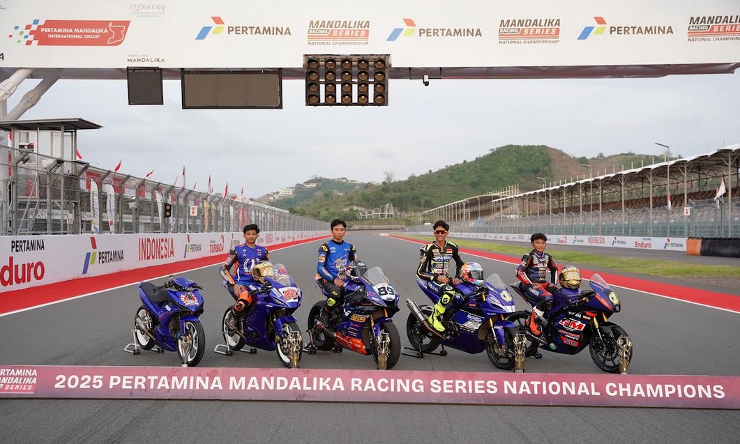 TerasBiker.com – Yamaha membuktikan DNA Racing yang sangat kuat direalisasikan di panggung balap nasional dengan menyapu bersih gelar juara 5 kelas Kejurnas Mandalika Racing Series musim ini. Hasil pamungkas tersebut terwujud setelah berakhirnya seri 5 atau putaran penutup di sirkuit internasional Mandalika, 1-2 November 2025.