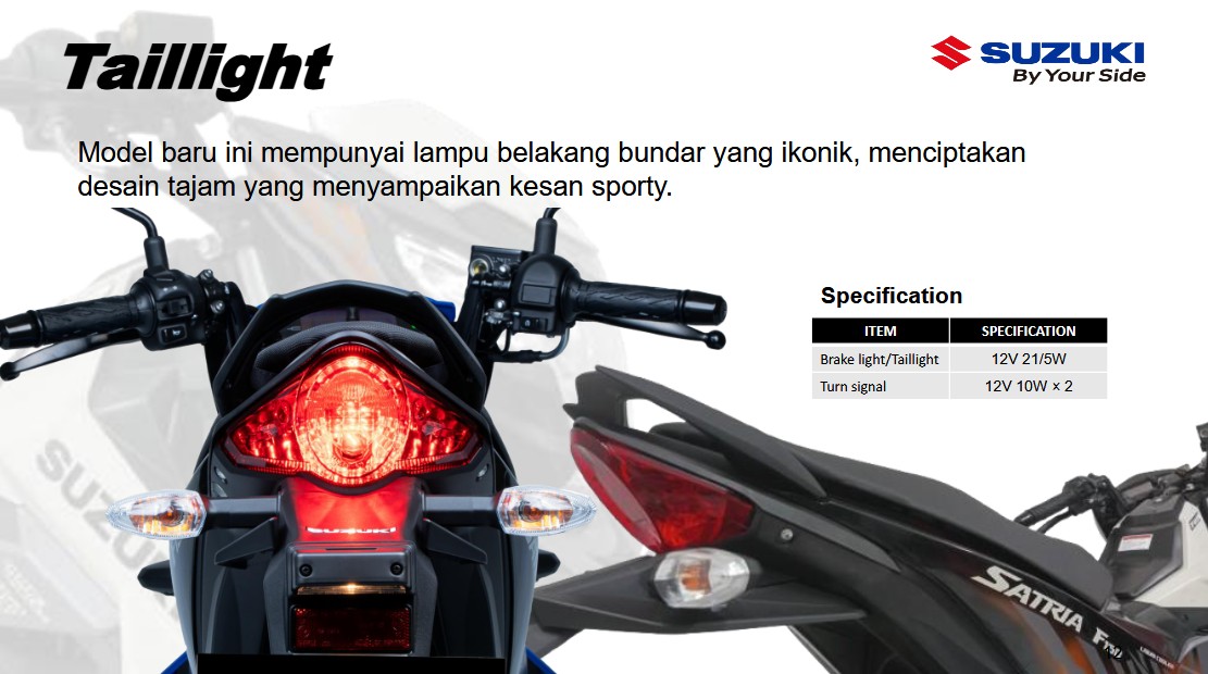 Masih merajai segmen underbone bermesin 150cc, kini Suzuki memperluas pilihan bagi calon konsumen dengan menyajikan 2 varian, yaitu Satria PRO dan Satria F150. Masing-masing varian menyajikan detail berbeda sesuai kebutuhan dan preferensi penggunanya.