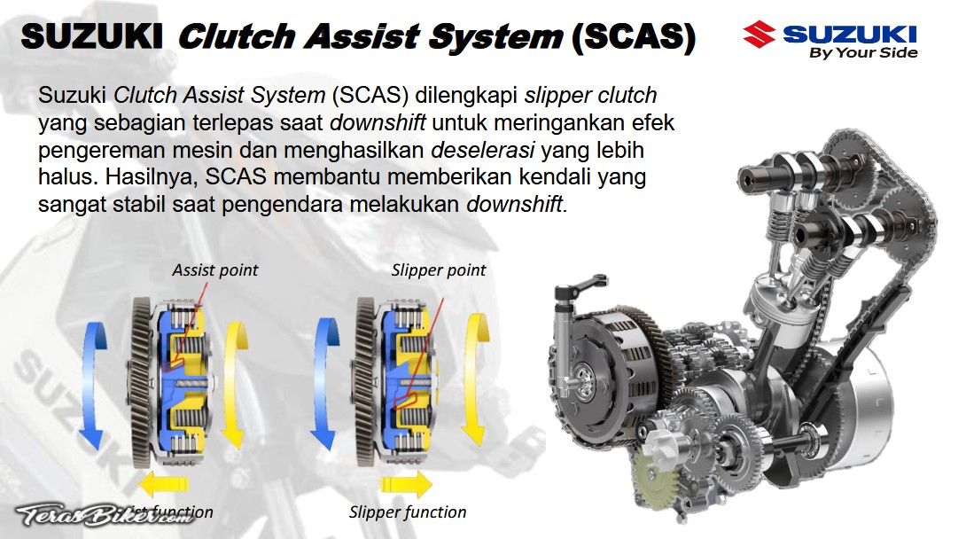 Pertama sebagai Assist Function, yang bertujuan meningkatkan daya cengkram kopling saat berakselerasi. Kedua adalah Slipper Function, untuk mengatur tekanan cengkraman kopling ketika pengendara melakukan downshifting. Alhasil, pengendara akan merasakan adanya peningkatan kehalusan serta kemudahan pengoperasian kopling setiap melakukan perjalanan.